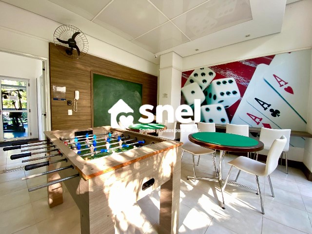 O condomínio oferece uma infraestrutura completa de clube, com piscina, quadra de esportes, academia equipada, sala de jogos, playground para crianças, elevador social e de serviço, e um salão de festas para suas celebrações. A garagem é dupla, garantindo espaço para dois veículos. A portaria 24 horas traz mais segurança e comodidade para sua família.